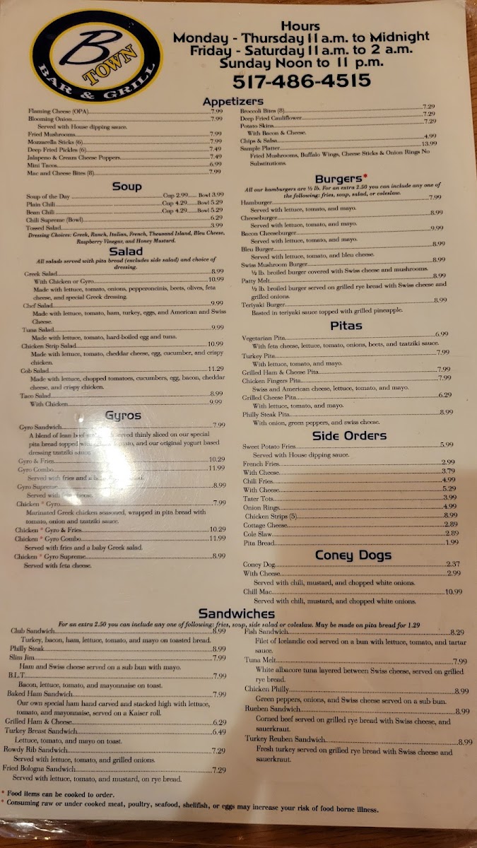 Located in the heart of Blissfield, MI, B Town Bar & Grill is a culinary gem that offers a delightful fusion of comfort food and a vibrant atmosphere. Their menu features a variety of options designed to satisfy every palate.